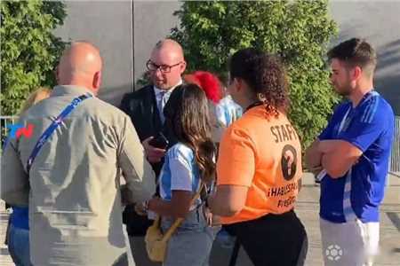 安东内拉与安保人员进行了交谈,并充当翻译,随后向其余人解释了他们无法进入球场的原因。