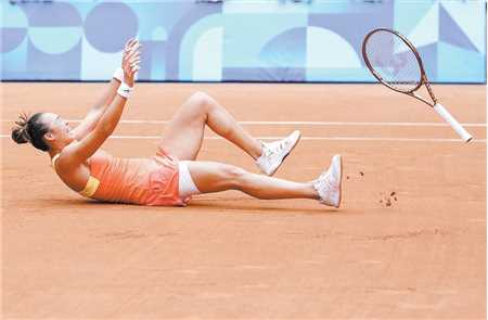 当郑钦文击出的最后一球落在场内,然后弹起飞到场边摄影壕的一刻,郑钦文像前面比赛时一样,双手高举躺倒在红土赛场上。她赢了!她兑现了“拼到最后一刻”的誓言。罗兰·加洛斯再次记录了属于中国网球的历史。这一刻,胜利属于郑钦文,胜利属于中国!