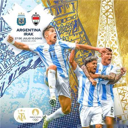 北京时间7月27日晚21点,阿根廷国奥将在巴黎奥运会男足小组赛第二轮的比赛中对阵伊拉克国奥。赛前,阿根廷队官方发布了海报。