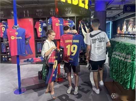 在诺坎普球场的官方商店,恩典大街和兰布拉大道的商店,记录了最多的来访球迷和销售量。在开门前几乎一个小时,就已经有球迷排队等候,想成为第一批买到新款球衣的人。不仅当地的巴萨球迷,许多在巴塞罗那度假的游客也没有错过购买这款球衣的机会。不出所料,亚马尔成为最受欢迎的球员,他的新19号球衣最受欢迎。