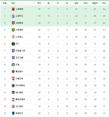 其他比赛中,青岛西海岸主场3-3战平梅州客家,主队两次取得2球领先优势,梅州客家下半场连进2球扳平比分;北京国安主场2-0击败天津津门虎,稳居联赛第4位;深圳新鹏程2-1逆转长春亚泰,河南队2-1逆转浙江队。