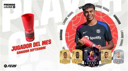 官方消息,巴塞罗那前锋亚马尔当选西甲联赛9月最佳球员。