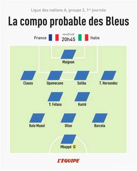 北京时间9月7日凌晨2:45,欧国联a级联赛,法国队将主场对阵意大利队,法国媒体《队报》预测了法国队此役首发。