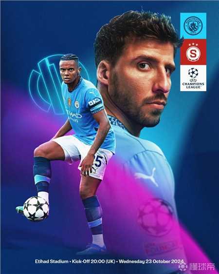 曼城发布本轮欧冠主场对阵布拉格斯巴达海报,球队后卫鲁本-迪亚斯、阿坎吉出镜。